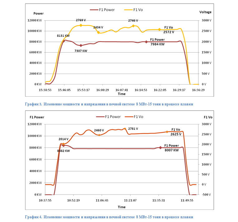 Все кривые на приводимых графиках взяты с программного обеспечения SCADA индукционной печной системы 8MW 15 тонн.