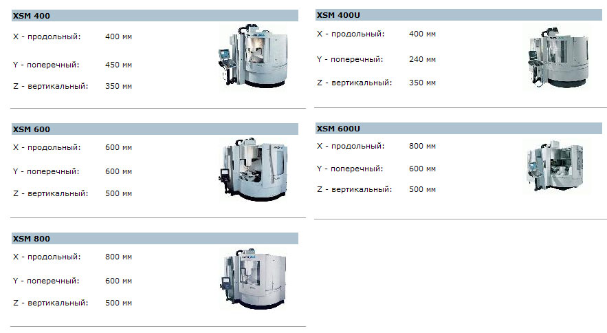 XSM - станки с 3-осевым управлением для сверхскоростной обработки (скорость быстрых перемещений до 80 м/мин, ускорения - до 2,5 g, частота вращения - до 60 000 мин-1).